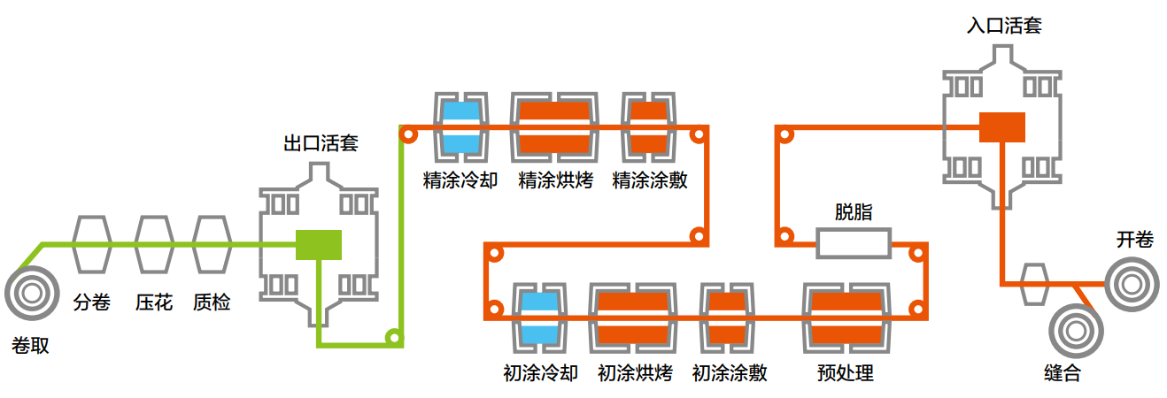 彩涂板也叫彩色涂層鋼板,它是以金屬卷材為基材,對基材板表面進行特殊處理,再在基材表面涂敷或?qū)右粚踊蚨鄬佑杏袡C涂料,通過特殊工藝、高溫固化從而獲得的涂裝產(chǎn)品。由于產(chǎn)品在完工階段已具有各種漂亮的色彩,故稱之“彩色涂層鋼板”,我們又通常簡稱為“彩鋼板”或“彩涂板”。