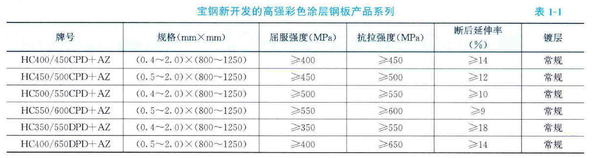 近年來國內(nèi)外彩色涂層鋼板市場對高強(qiáng)、高韌、具有良好成型性能的彩色涂層鋼板產(chǎn)品需求顯著提高。同時(shí)對成本控制要求也不斷增加。針對于此,寶鋼成功開發(fā)出具有高強(qiáng)、高韌特性、強(qiáng)度不小于450MPa、斷裂延伸(El)不小于10%的系列先進(jìn)高強(qiáng)鋼彩色涂層鋼板產(chǎn)品。