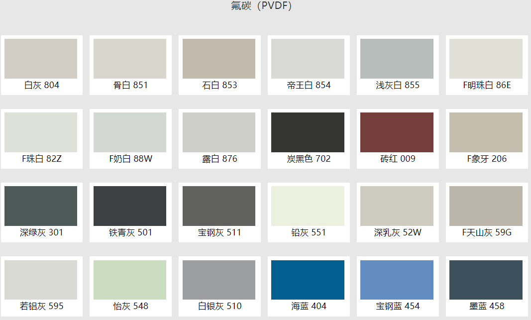 優(yōu)良的顏色保持性和抗紫外線性能、優(yōu)良的室外耐久性和抗粉化性、漆膜附著力好,顏色豐富、優(yōu)異的性價比。(4) 聚偏二氟乙烯(PVDF/PVF2)